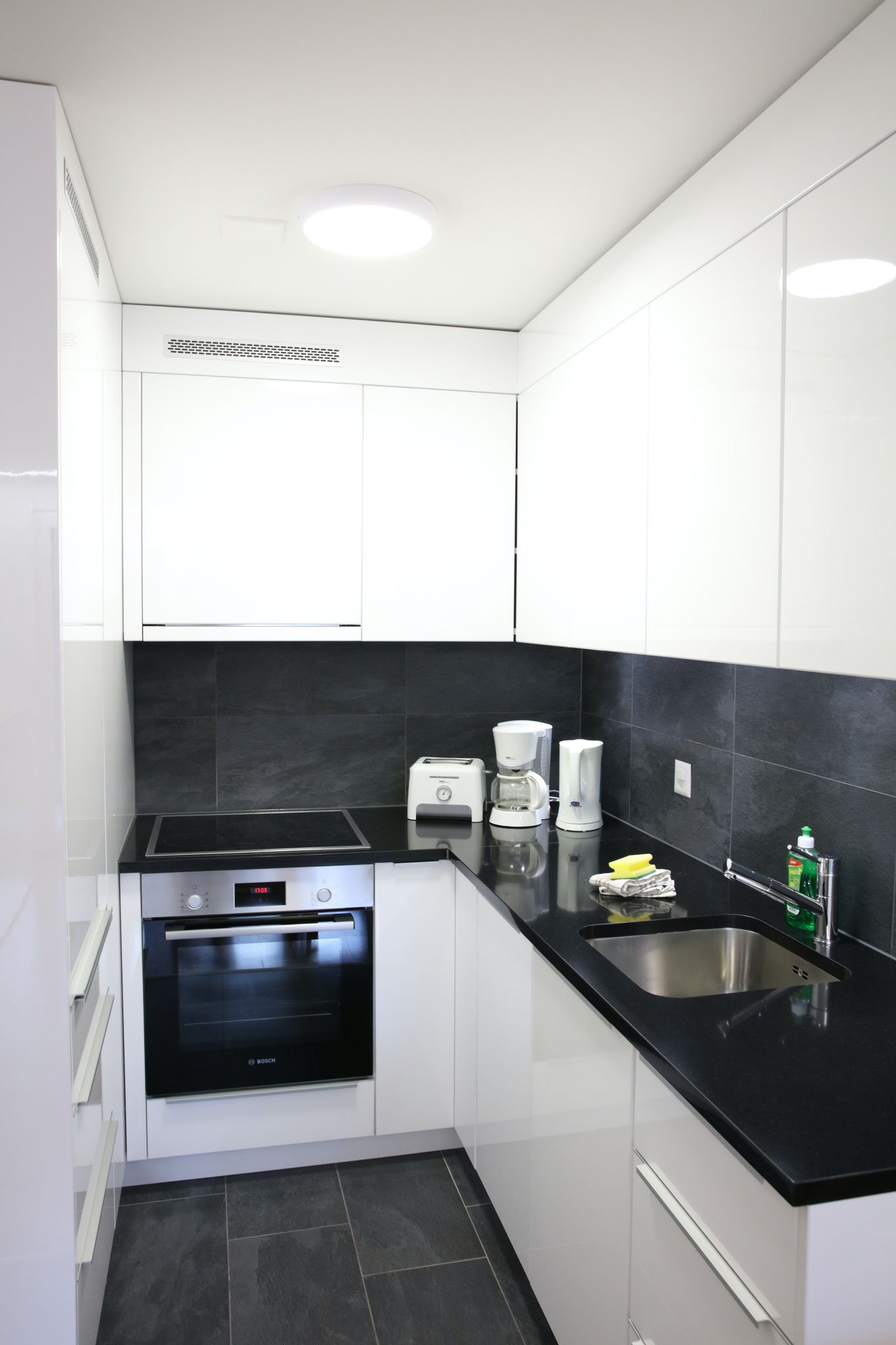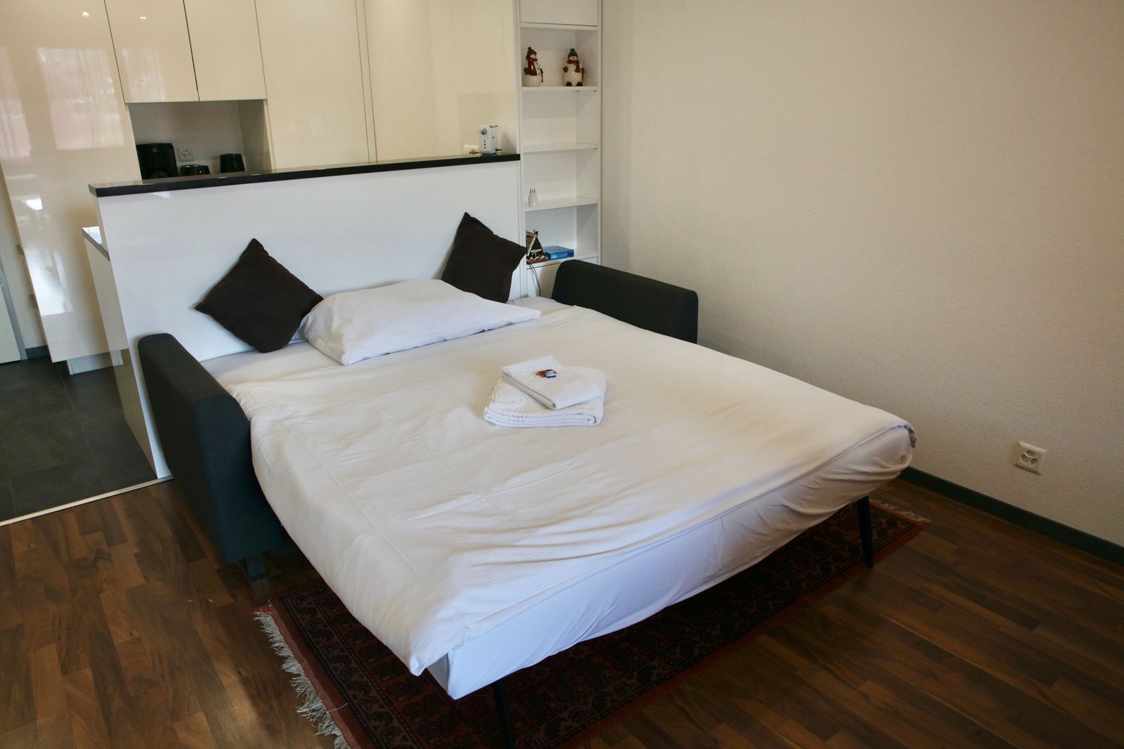 Die Küche ist komplett für 3 Personen ausgestattet. Eine Kaffeemaschine, Toaster und Wasserkocher gehören zu unserer Standardausstattung. Im Preis sind ein Parkplatz, Bettwäsche, Handtücher und Nebenkosten (Heizung, Strom und Wasser) enthalten.